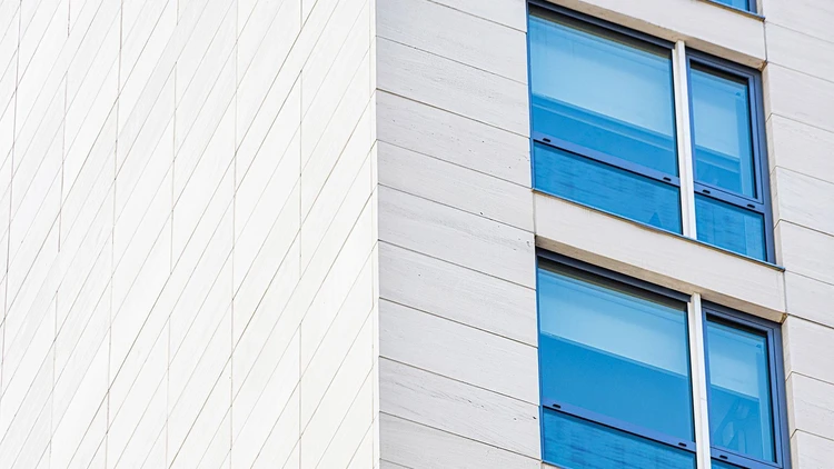 The façade is clad with GammaStone Natural Air panels in Limestone Mocha Cream, a Portuguese limestone with light beige tones and a fine-grain finish, giving the building a refined and contemporary appearance. The panels reach maximum dimensions of 3200 x 1500 mm, with a total thickness of 17 mm and a stone thickness of 6 mm. The GammaStone Air ventilated façade technology ensures excellent thermal and acoustic performance while complying with structural constraints for a slim profile of less than four inches.