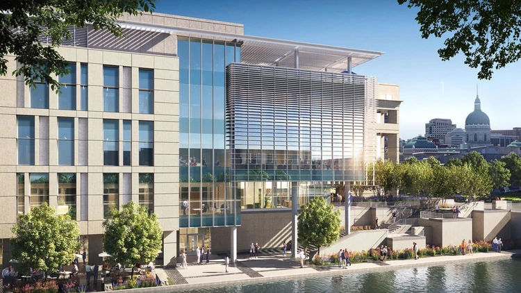 The Indiana State Archives Building is a landmark project located at 450 W Ohio St, Indianapolis, designed by Ratio. This new building will house invaluable historical documents and artifacts managed by the Indiana Archives and Records Administration. Its location along the Canal Walk in downtown Indianapolis, near the Indiana State Library, the Indiana State Museum, and the Indiana Historic Center, creates an ideal synergy for historical and cultural research.