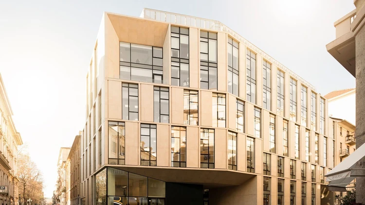 The Reale Mutua Assicurazioni project in Turin represents an example of contemporary architecture that harmoniously interacts with the surrounding historic context. Located on Corso Siccardi, the building houses the executive offices of the eponymous insurance company, featuring a design that blends elegance, functionality, and technological innovation.