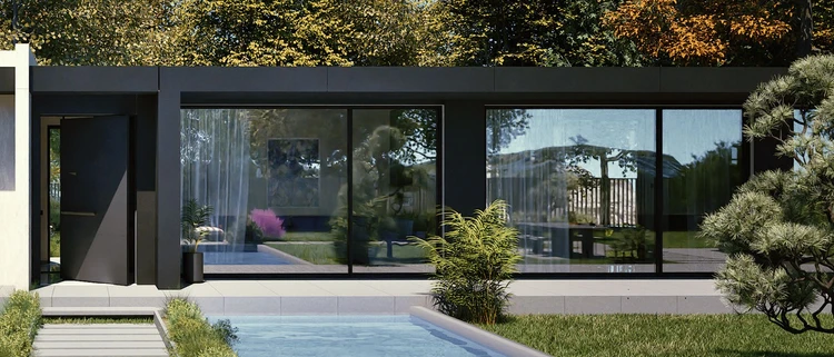 Large glazed surfaces for maximum natural light and seamless indoor-outdoor connection.