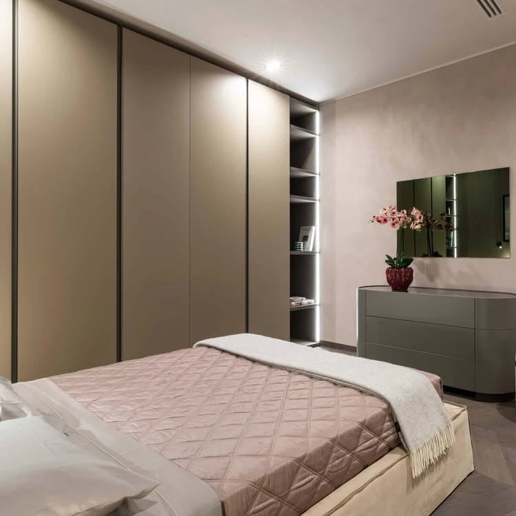 Furnishings include beds, wardrobes, walk-in closets, and accessories—each tailored to the space and the individual. Every element is conceived to create a serene, functional atmosphere while maintaining visual harmony with the rest of the home.