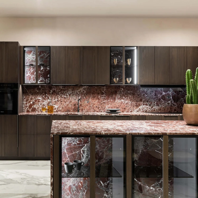 Every layout is tailor-made, featuring optimized spaces, high-end appliances, central islands, and smart storage solutions. Materials and finishes are fully customizable, ensuring that each kitchen fits seamlessly into the client’s lifestyle.