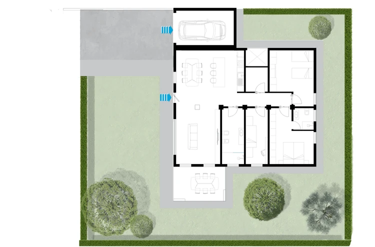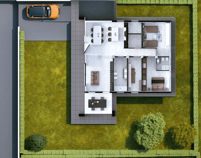 GammaVilla's exterior design combines aesthetics and functionality, creating harmonious spaces in tune with the surrounding environment.