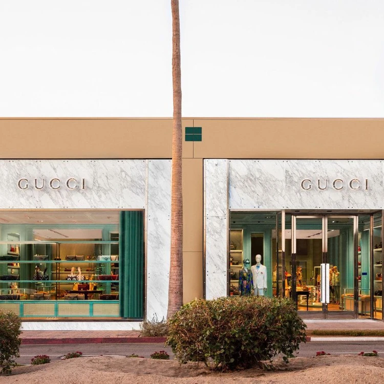 Gucci uses GammaStone Natural Air in Calacatta Gold for an elegant and sophisticated exterior cladding of its California headquarters and the Palm Desert store.
