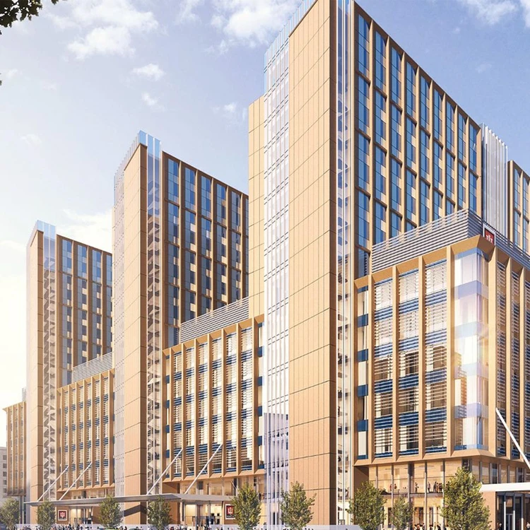 Hyatt Place, New York: 46-story hotel with 500+ rooms, natural stone façade with integrated cladding and insulation.