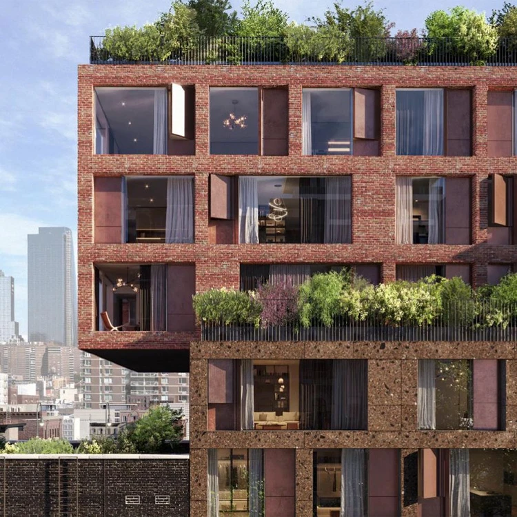 The Elisa: boutique condo in New York with 25 luxury units, brick and stone façade, and premium amenities such as rooftop garden, gym, and concierge services.